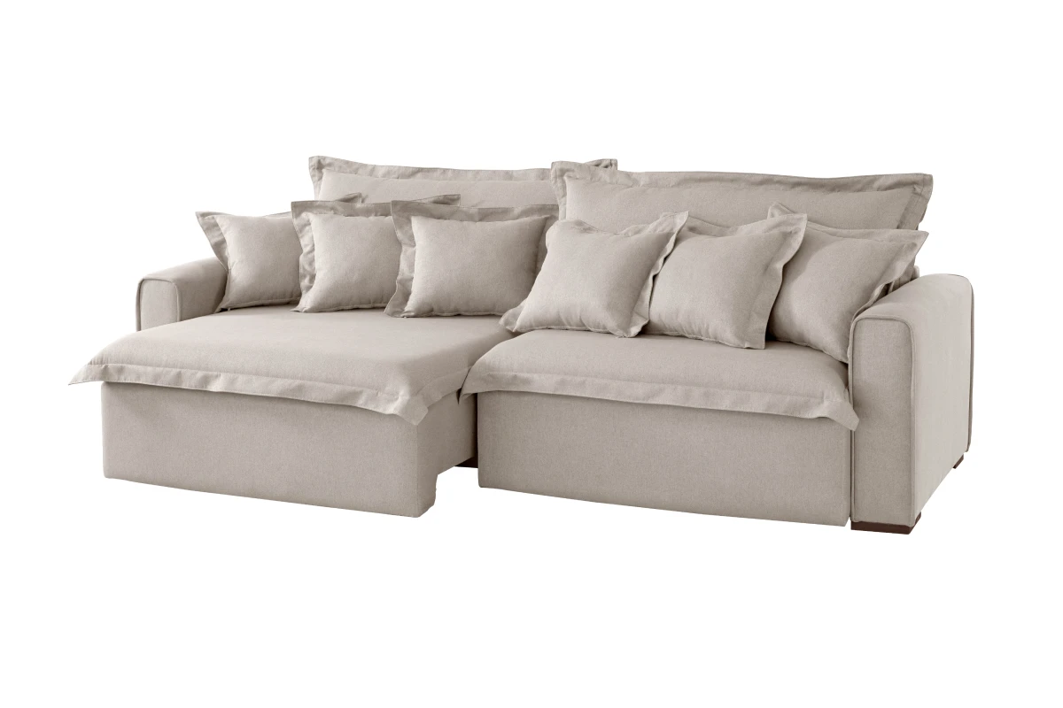 Assentos com mecanismos em tubos de aço e sistema retrátil em metal, com percintas elásticas italianas transpassadas e entrelaçadas por percintadora automática, molas espirais, espumação hiper soft D28 e manta acrílica siliconada, totalizando 16 cm de altura.