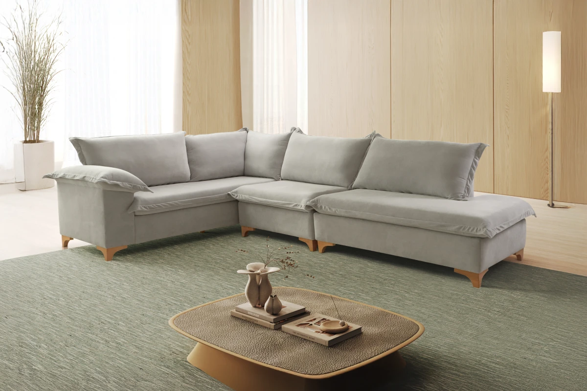 Sofá modulado que permite personalização conforme espaço e necessidade.