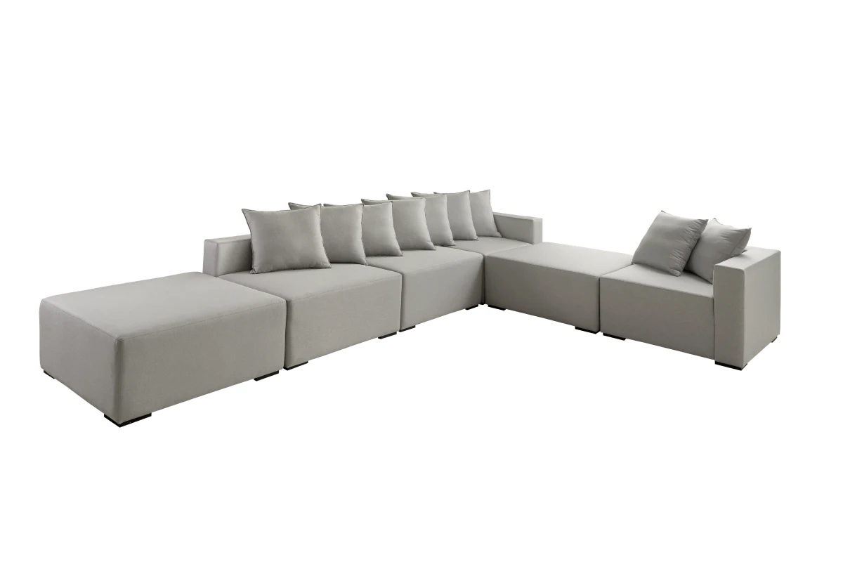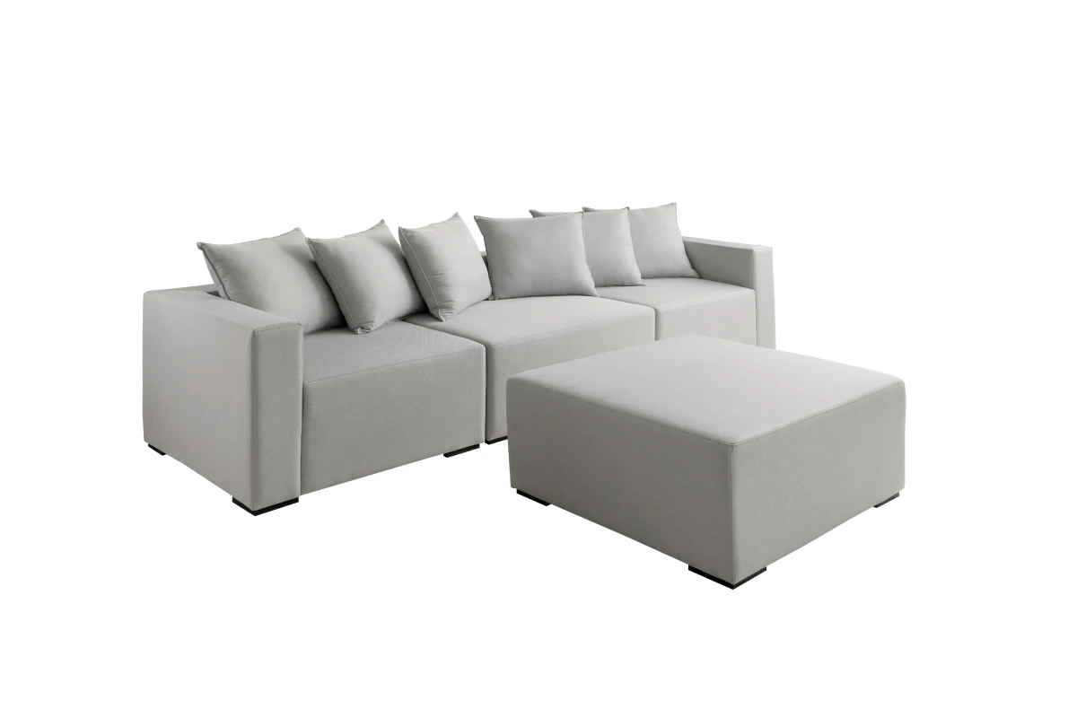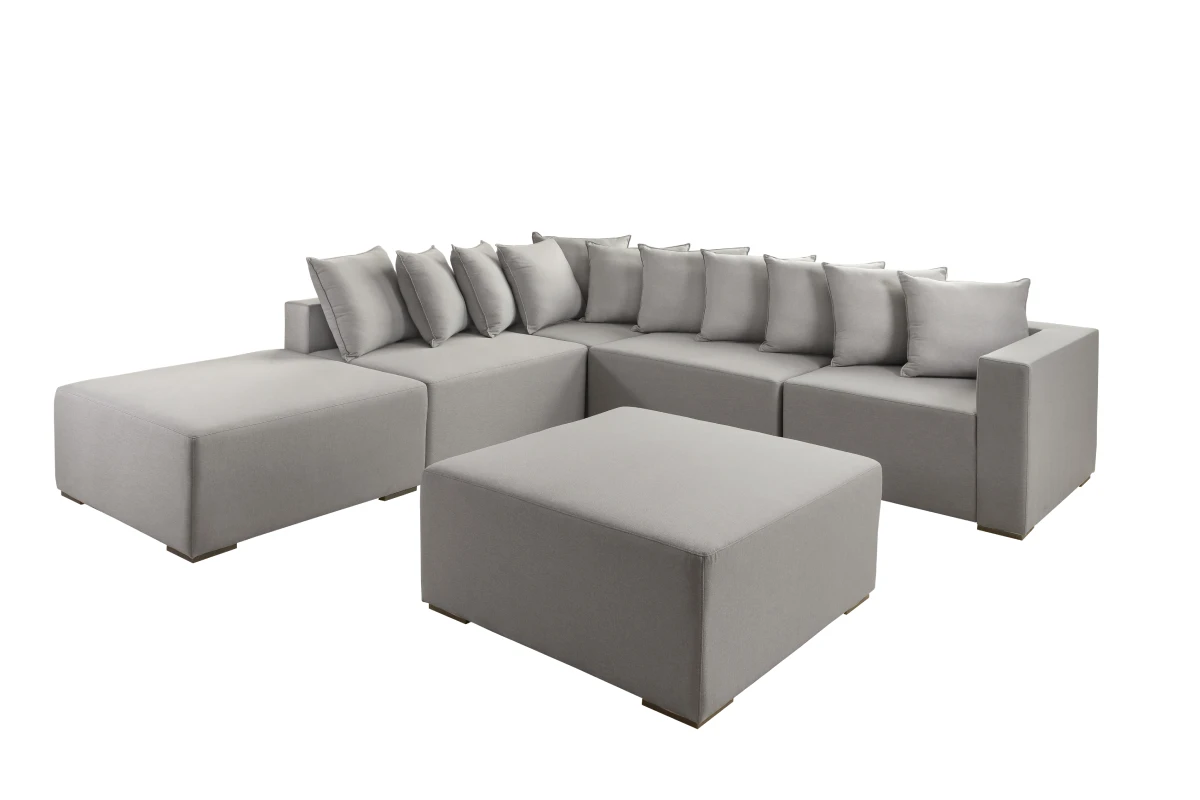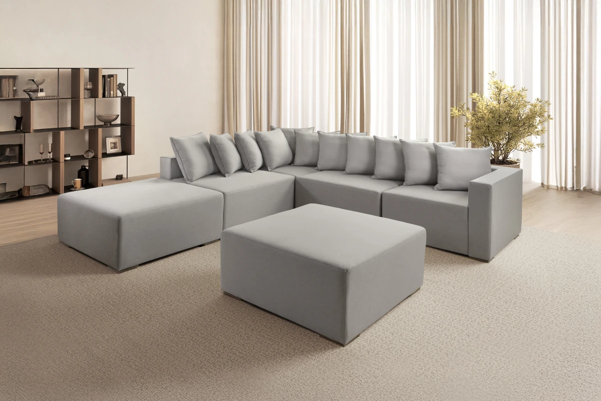 Sofá modulado que permite personalização conforme o espaço e a necessidade.