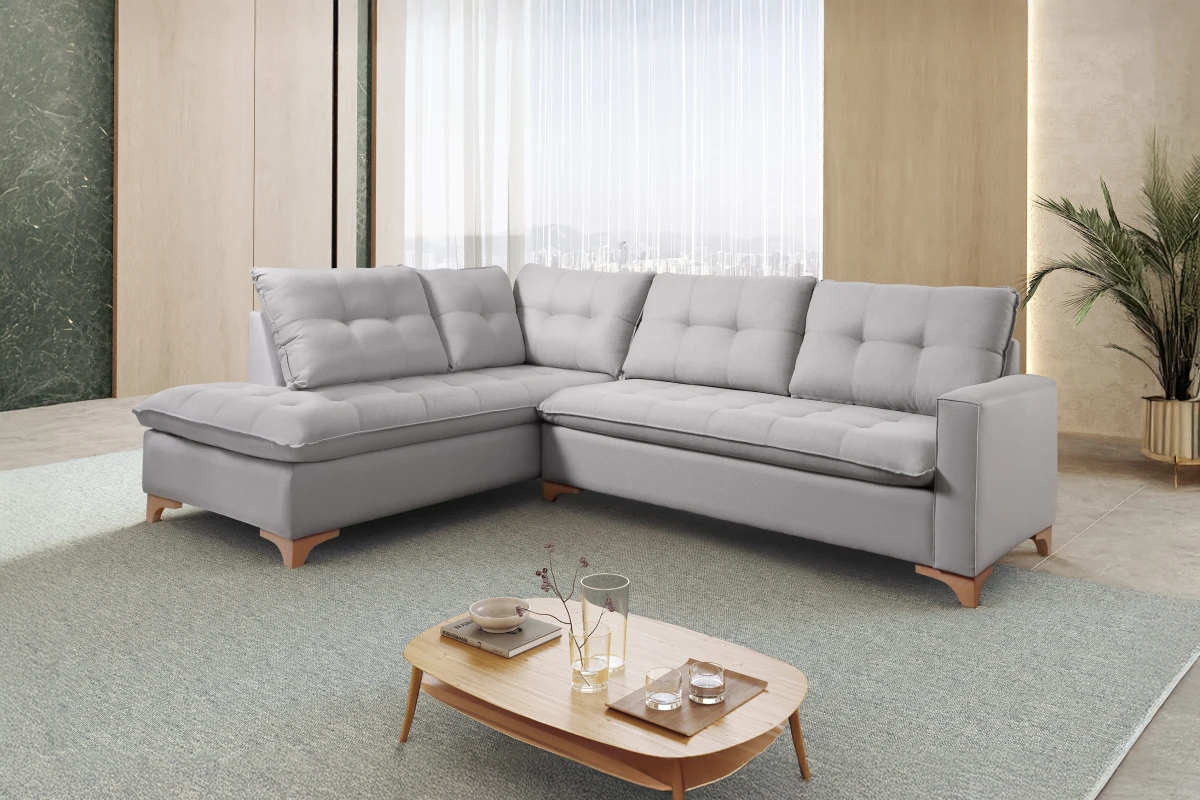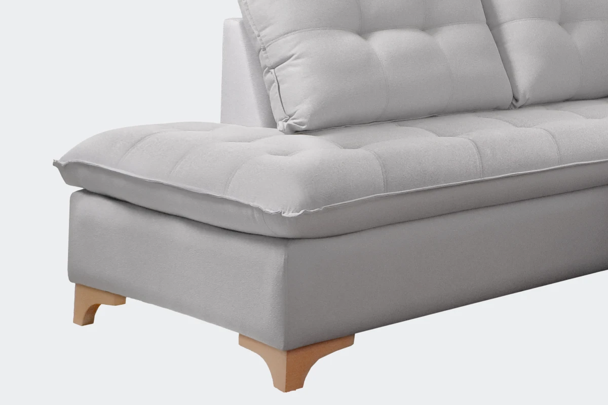 Assentos com percintas elásticas italianas, transpassadas e entrelaçadas por percintadora automática, molas espirais, espumação hiper soft D28 e manta acrílica siliconada, totalizando 16 cm de altura.