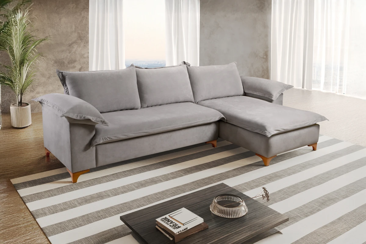 Assentos com percintas elásticas italianas transpassadas e entrelaçadas por uma percintadora automática, molas espirais, espumação hiper soft D28 e manta acrílica siliconada, totalizando 16 cm de altura.