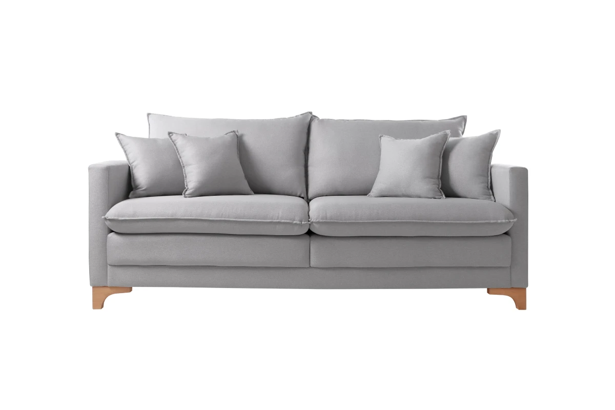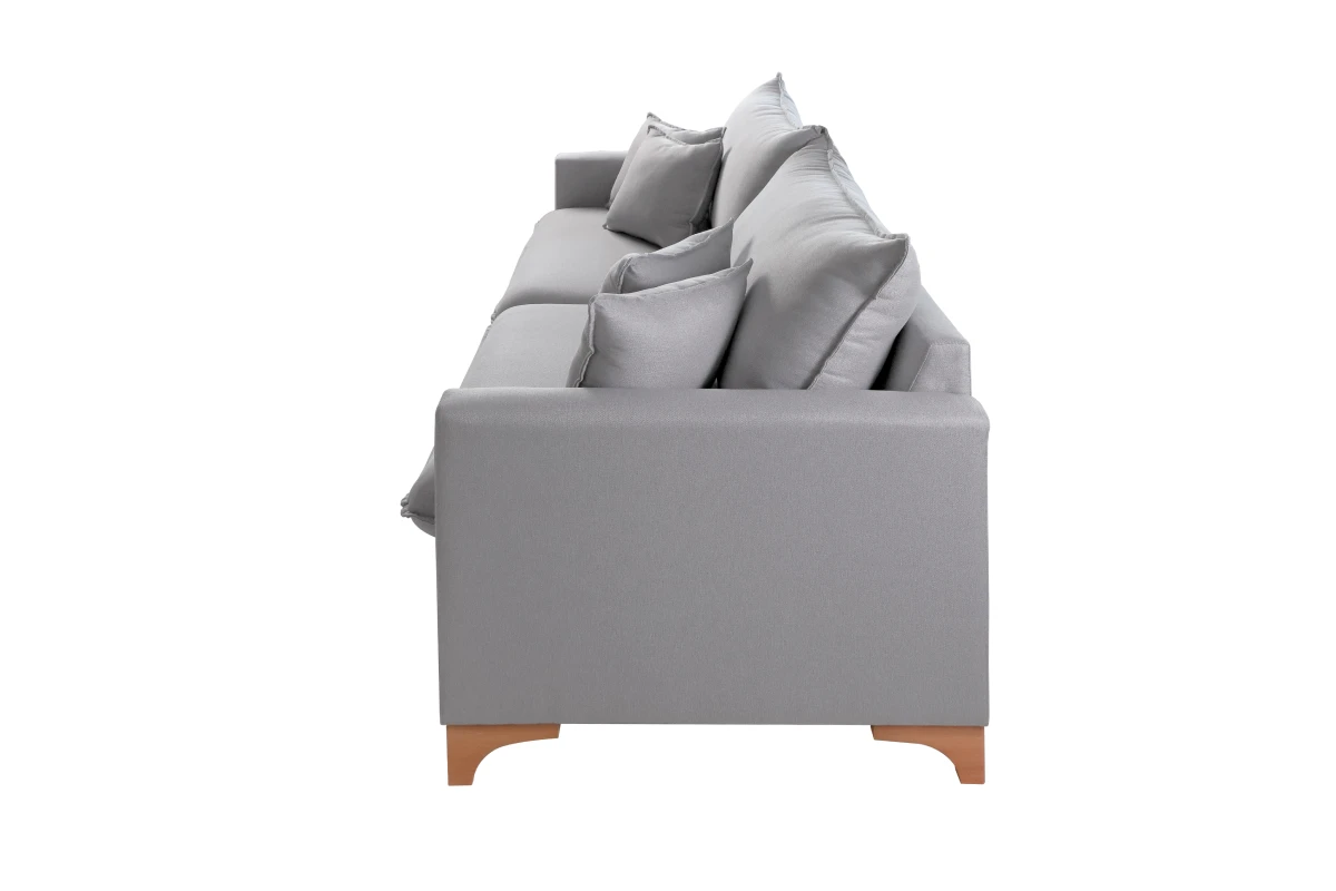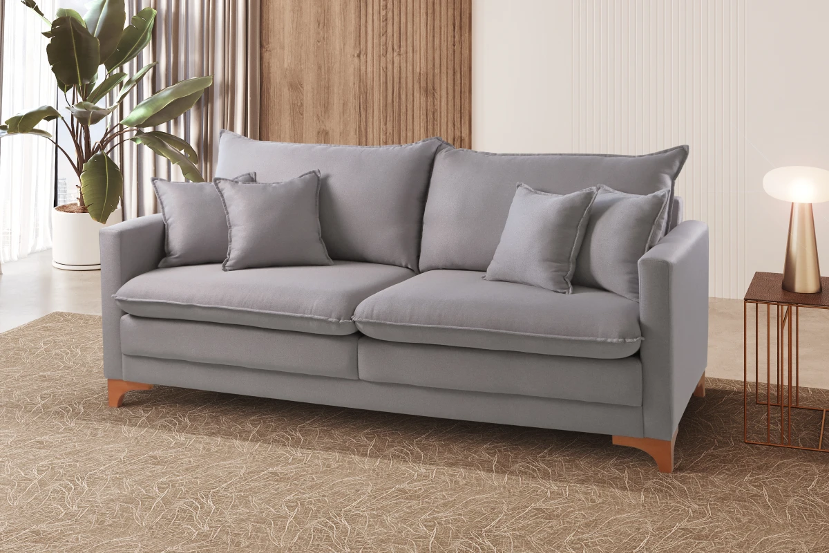 Assentos com percintas elásticas italianas transpassadas e entrelaçadas por uma percintadora automática, molas espirais, espumação hiper soft D28 e manta acrílica siliconada, totalizando 16 cm de altura.